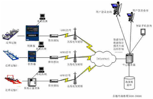 通過安裝在稱重設備上的傳輸模塊將稱重數據傳送到中央服務器。由中央服務器完成稱重數據處理、運算,可負載5000-10000部傳輸模塊同時工作。用戶可通過B/S構架的網頁、手機等作為數據監控終端對數據服務器進行實時的訪問、歷史查詢,計量統計實現了對計量數據的實時監控。